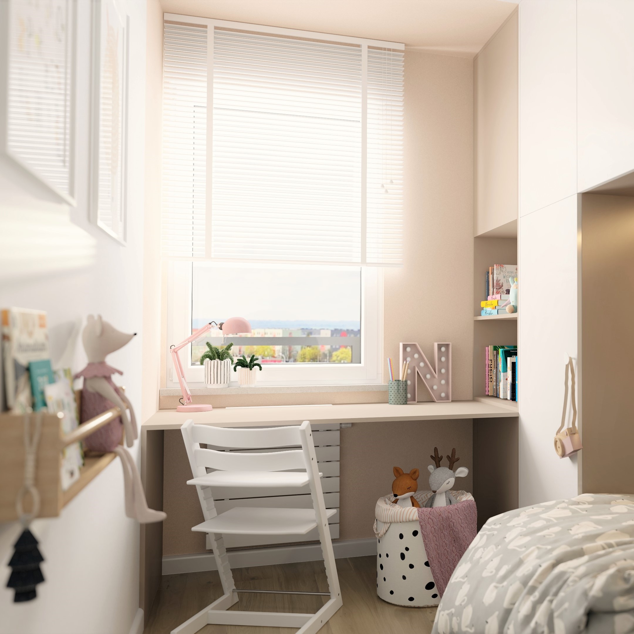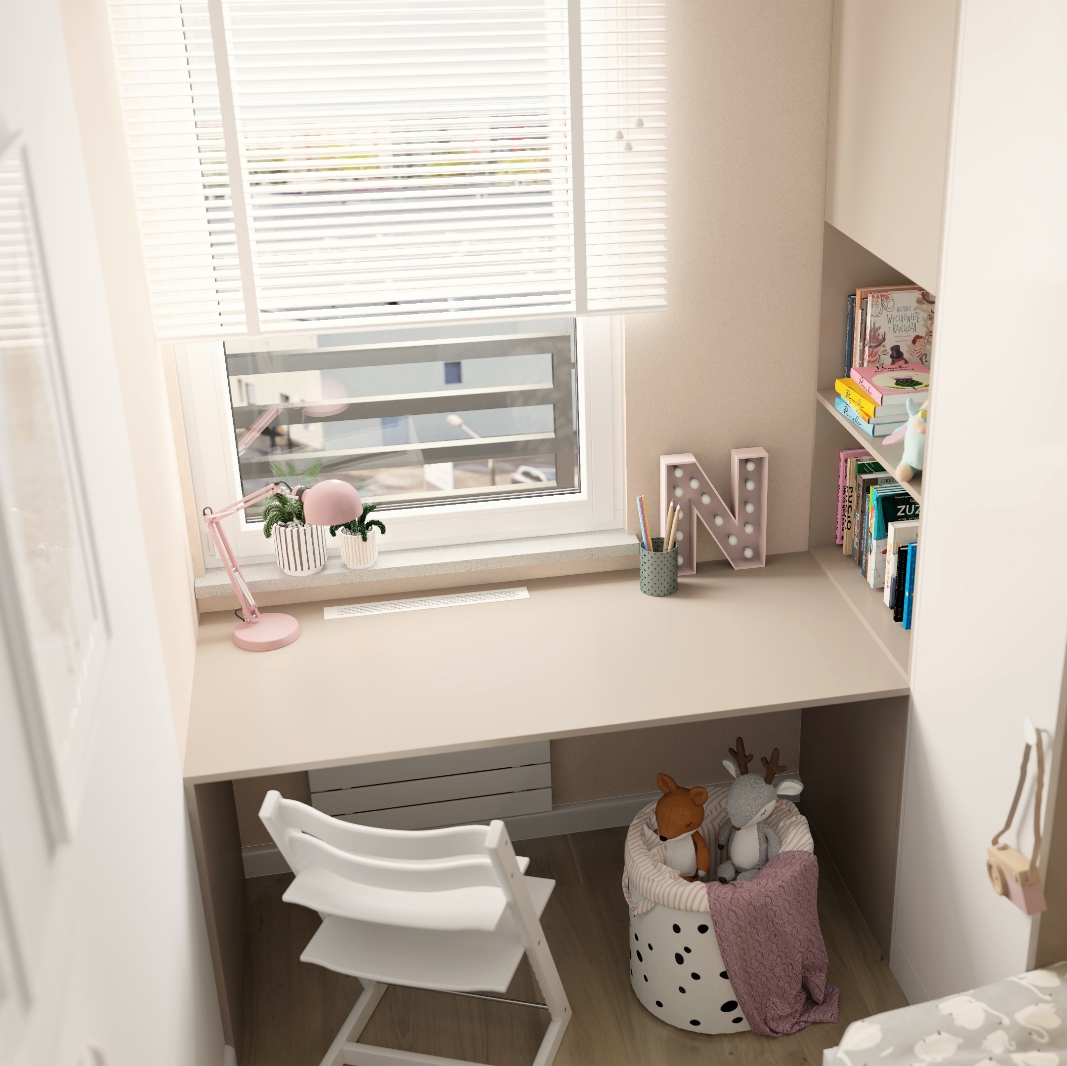 🎨📖 Przytulny kącik z biurkiem, gdzie może tworzyć rozwijać swoje talenty w przyszłości stanie się komfortowym miejscem do nauki.